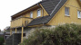 2-Zimmer Ferienwohnung im 1. Obergeschoss einer liebevoll angelegten Ferienanlage. Die Ferienwohnung ist im Wohnbereich ausgestattet mit einer gemütlichen Couch und einer offenen Küche mit Essbereich.