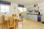 2-Zimmer Ferienwohnung im 1. Obergeschoss einer liebevoll angelegten Ferienanlage. Die Ferienwohnung ist im Wohnbereich ausgestattet mit einer gemütlichen Couch und einer offenen Küche mit Essbereich.
