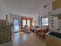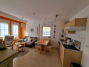 Die Ferienwohnung ist im Wohnbereich ausgestattet mit einer gemütlichen Couch und einer offenen Küche mit Essbereich. Die Südterrasse lädt zum Entspannen ein.