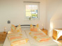 Gemütliche 2-Zimmer Ferienwohnung im 1. Obergeschoss einer freundlich angelegten Ferienanlage. Die Ferienwohnung ist im Wohnbereich ausgestattet mit einer Couch, Flachbild-TV und einer offenen Küche mit Essbereich.