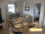 Helle 2-Zimmer Ferienwohnung im Obergeschoss einer liebevoll angelegten Ferienanlage. Die Ferienwohnung ist im Wohnbereich ausgestattet mit einer gemütlichen ausziehbaren Eckcouch und einer offenen Küche mit Essbereich.