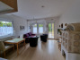Die Ferienwohnung ist im Wohnbereich ausgestattet mit einer gemütlichen Couch und einer offenen Küche mit Essbereich.