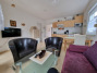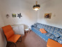 Die Ferienwohnung ist im Wohnbereich ausgestattet mit einer gemütlichen Couch und einer offenen Küche mit Essbereich.