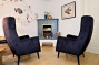 - 1 Wohnraum ist ausgestattet mit einer gemütlichen Sitzecke: Schlafsofa (1,60 m Liegefläche),2 Sessel, TV und einem elektrischen Kamin, WLAN