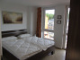 - 1 Schlafzimmer im 2.OG, Komfortdoppelbett 180 x 200 cm mit 4-Jahreszeiten-Steppbetten, TV-Flachbildschirm und Nord-Ost-Balkon (6 m²) mit Gartenmöbeln
