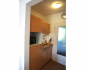 gut eingerichtete Küche mit Ceranherd, Wasserkocher, Backofen, Geschirr, Besteck, Gläser, Kaffeemaschine, Toaster, Kühlschrank, Mikrowelle, Staubsauger, TV, Mini-Stereoanlage mit CD-Player, WLAN