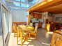 1 Wohnraum mit Ecksitzgruppe und Sessel, Küchenzeile und Essplatz im Wintergarten