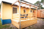 Bungalow mit 2 Schlafzimmern und einem gemütlichen Wohnraum mit Essecke, Küchenzeile und einer Couch. Auf dem idyllischen Grundstück steht Ihnen eine 10 qm große überdachten Terrasse zum Relaxen zur Verfügung. Der Bungalow wurde 2020 komplett renoviert, ist modern eingerichtet und ausgestattet mit Fernseher, Kabel- oder Satellitenanschluss und Radio.