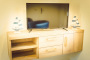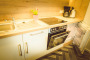 gut ausgestattete Pantryküche mit Herd, Wasserkocher, Toaster, Gläser, Geschirr, Besteck, Kaffeemaschine, Kühlschrank, Fernseher, Radio, Kinderreisebett & Hochstuhl