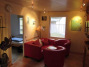 Pantryküche mit Herd, Wasserkocher, Toaster, Eierkocher, Gläser, Geschirr, Besteck, Mikrowelle, Kaffeemaschine, Kühlschrank, Staubsauger, HD-TV + Kabel, Radio mit CD-Player, Kinderreisebett + Hochstuhl